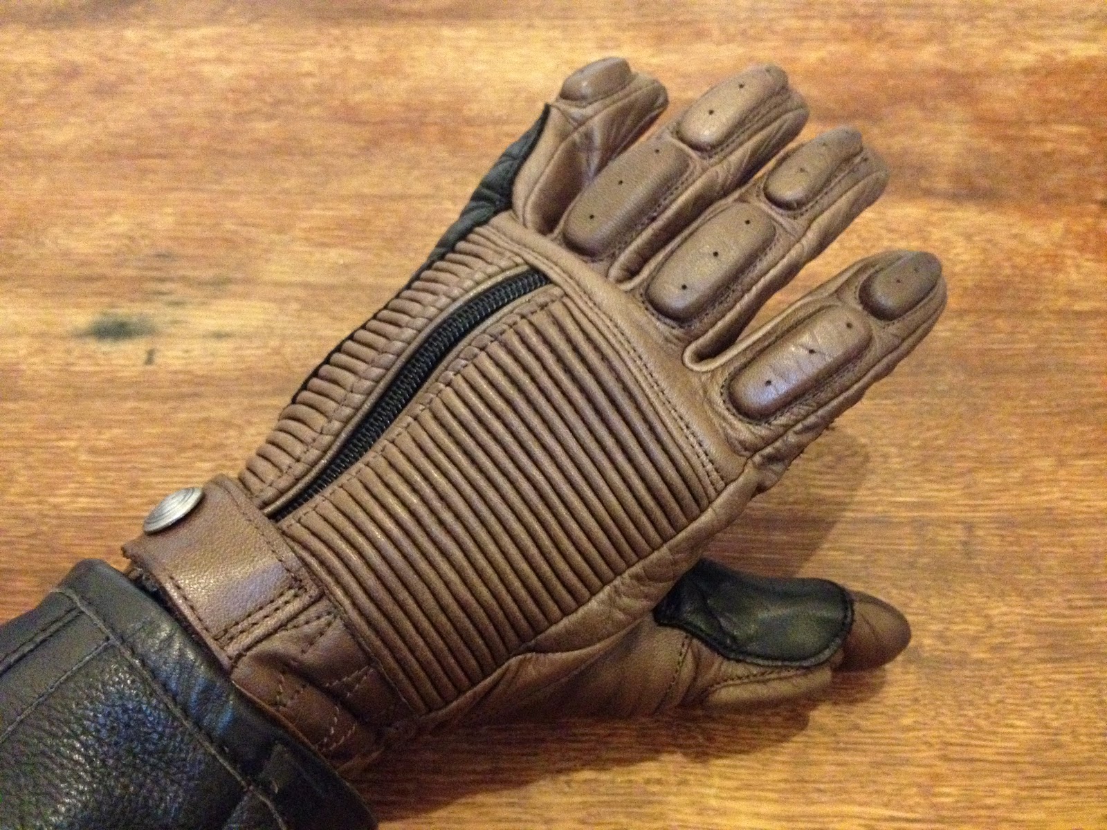 Waxed cotton with leather accents gives your hands a very classy café-racing-inspired look, while a cowhide double leather palm offers protection if you meet the road hands-first. Perforated fourchettes help keep the air flowing during warm rides, and a pre-curved fit helps you grip the bars comfortably.