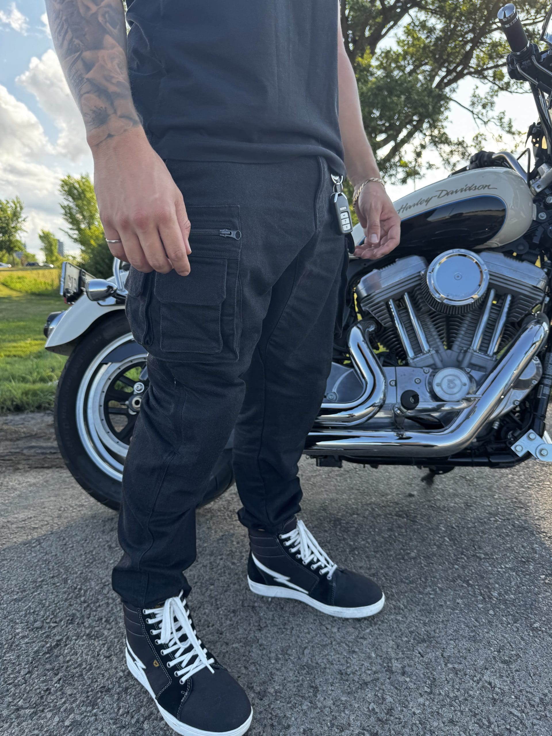 That’s what led me to the Pando Moto Desert Cargo pants. They promise CE AA-rated single-layer Cordura® stretch denim, built-in Coolmax® for breathability on warm rides, and a slim cargo cut that works whether you’re in the city or headed out on the backroads for a longer ride through nature.